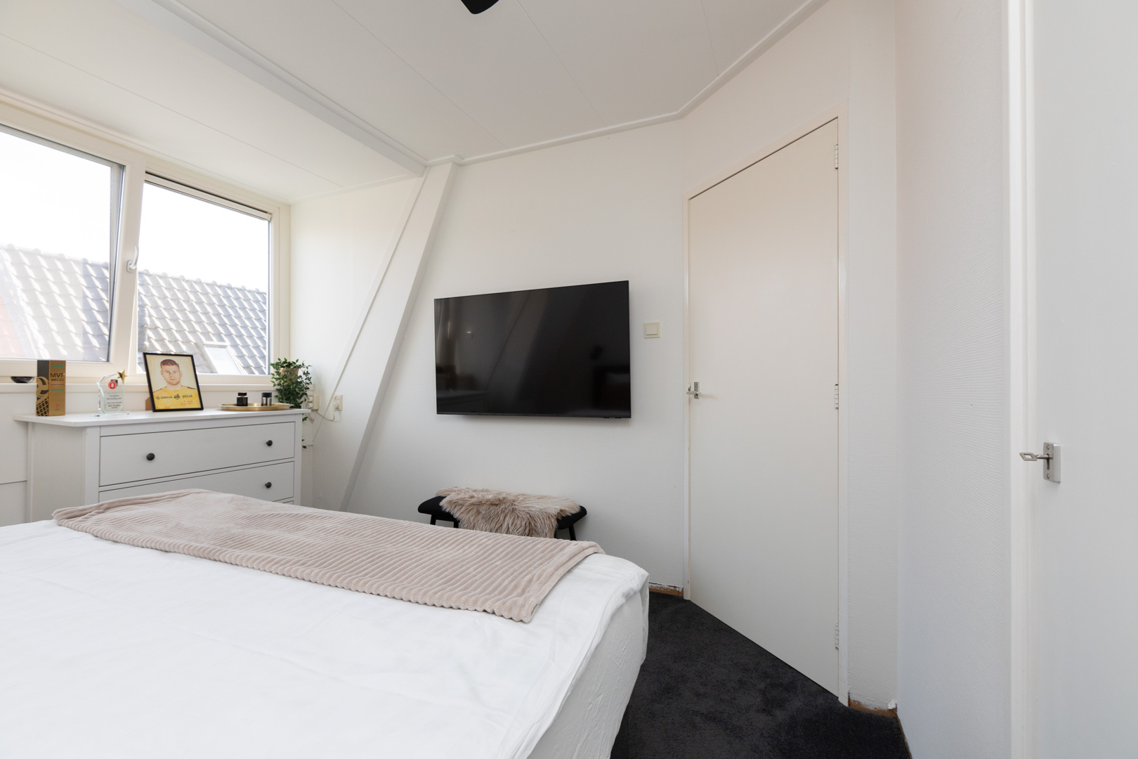 Ruime overloop en drie slaapkamers (ca. 7, 11, 15m2). CV-kast op de overloop. Grote kunststof dakkapel aan de achterzijde, kunststof dakkapel aan de voorzijde. De grootste slaapkamer heeft toegang tot een inloopkast (ca. 4m2), met schuifdeuren, en de middelste slaapkamer heeft een vaste kast. De ruime badkamer (ca. 7m2) is vernieuwd in 2012, is modern uitgevoerd, volledig betegeld en voorzien van een infra rood paneel. Complete inrichting met een royaal ligbad, een inloopdouche, wastafelmeubel en een 2e toilet (wandcloset).