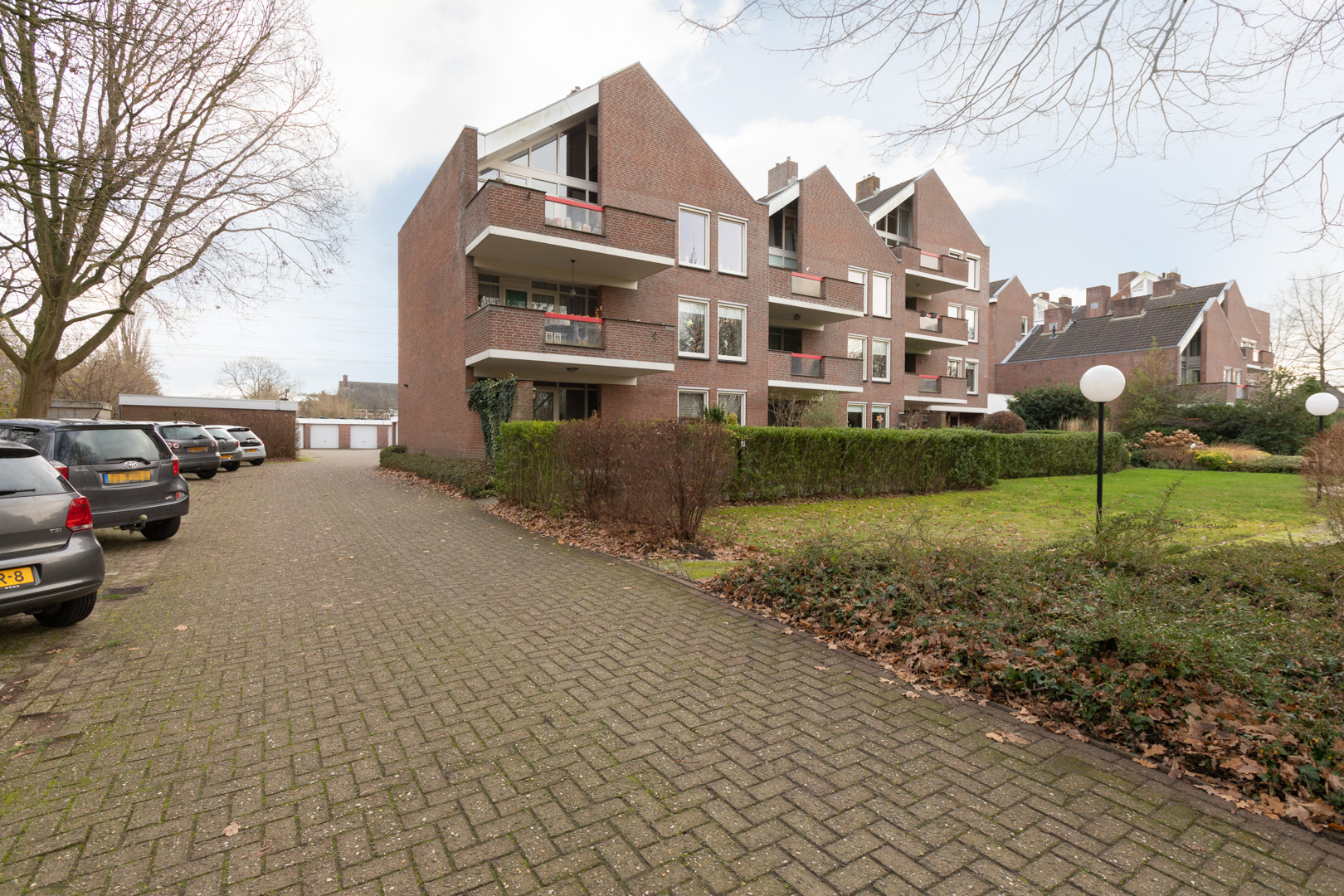 Aan de voorzijde van het gebouw bevindt zich de algemene entree met afgesloten portaal met intercom en brievenbussen. Tevens bevindt zich daar de gemeenschappelijke fietsenberging. Voor de bewoner is het appartement tevens bereikbaar via de entree aan de achterzijde van het complex. Parkeren kan in de vakken op het eigen terrein van het complex.