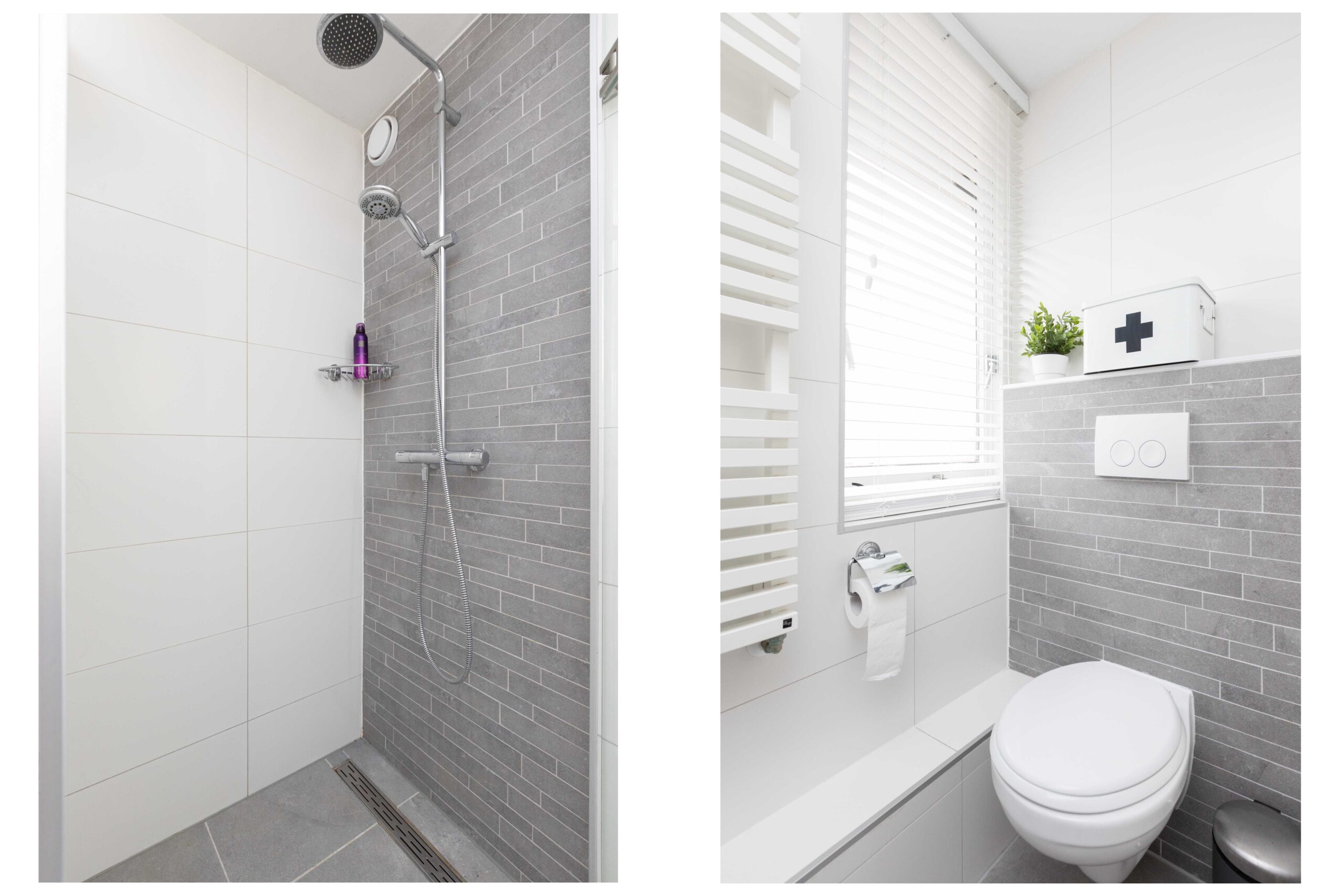 Overloop en drie ruime slaapkamers (12, 12, 10m2) met moderne laminaatvloer. Volledig betegelde moderne badkamer (ca. 4m2) ingericht met inloopdouche, breed wastafelmeubel met twee kranen, kast, 2e toilet (wandcloset) en mechanische ventilatie.