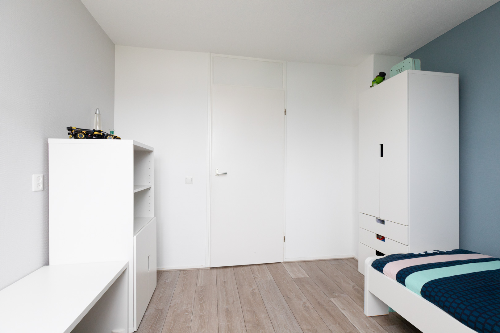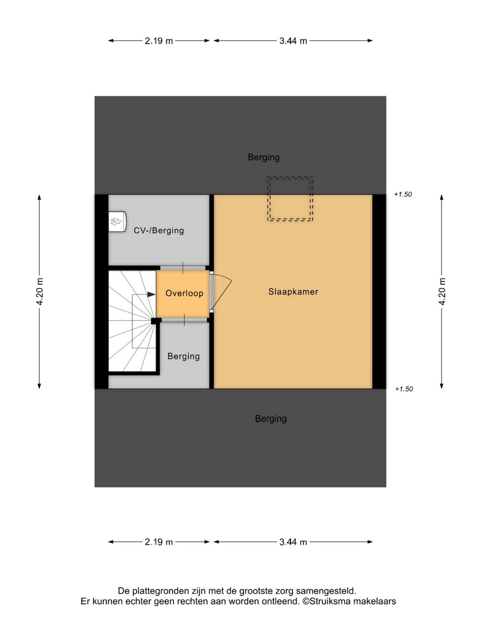 Vaste trap. Overloop. Berging met opstelling cv-combiketel. 2e berging/vaste kast. Ruime vierde slaapkamer (ca. 15m2) met kunststof dak-/kantelraam, moderne laminaatvloer en veel bergruimte.