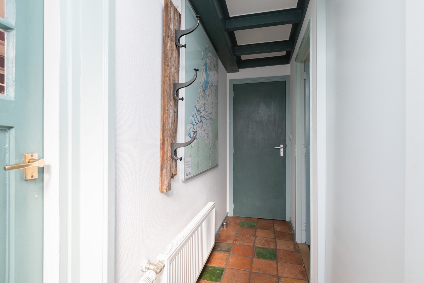 Entree/gang met estriken vloer. Garderobekast met twee schuifdeuren. Slaapkamer (ca. 10m2) met kastenwand. Wc ingericht met wandcloset en aangrenzend de badkamer ingericht met inloopdouche, ligbad, wastafelmeubel van steigerhout, inbouwspots en een elektrische kachel. De vloer is belegd met Harlinger tegels en heeft elektrische vloerverwarming. Sfeervolle woonkamer (ca. 29m2) met estriken vloer, voorzien van vloerverwarming, balkenplafond, kastenwand en een rookkanaal t.b.v. een houtkachel. Meterkast (10 gr./aardlek/kookgroep). Trapopgang. Schuifdeur naar de keuken (ca. 7m2) met passende inrichting, voorzien diverse inbouwapparatuur (inductie kookplaat, oven, wasemkap, Quooker, vaatwasmachine, koeler en vriezer), wasmachine aansluiting en plafond met inbouwspots. Aangebouwde berging (ca. 5m2). Heerlijk vrije en zonnige tuin, met veel privacy. Ligging op het zuidoosten. Ingericht met terras, gazon en overkapping (ca. 11m2), met werkblad (inclusief water aansluiting), om tot in de late uren van het buitenleven te kunnen genieten.
