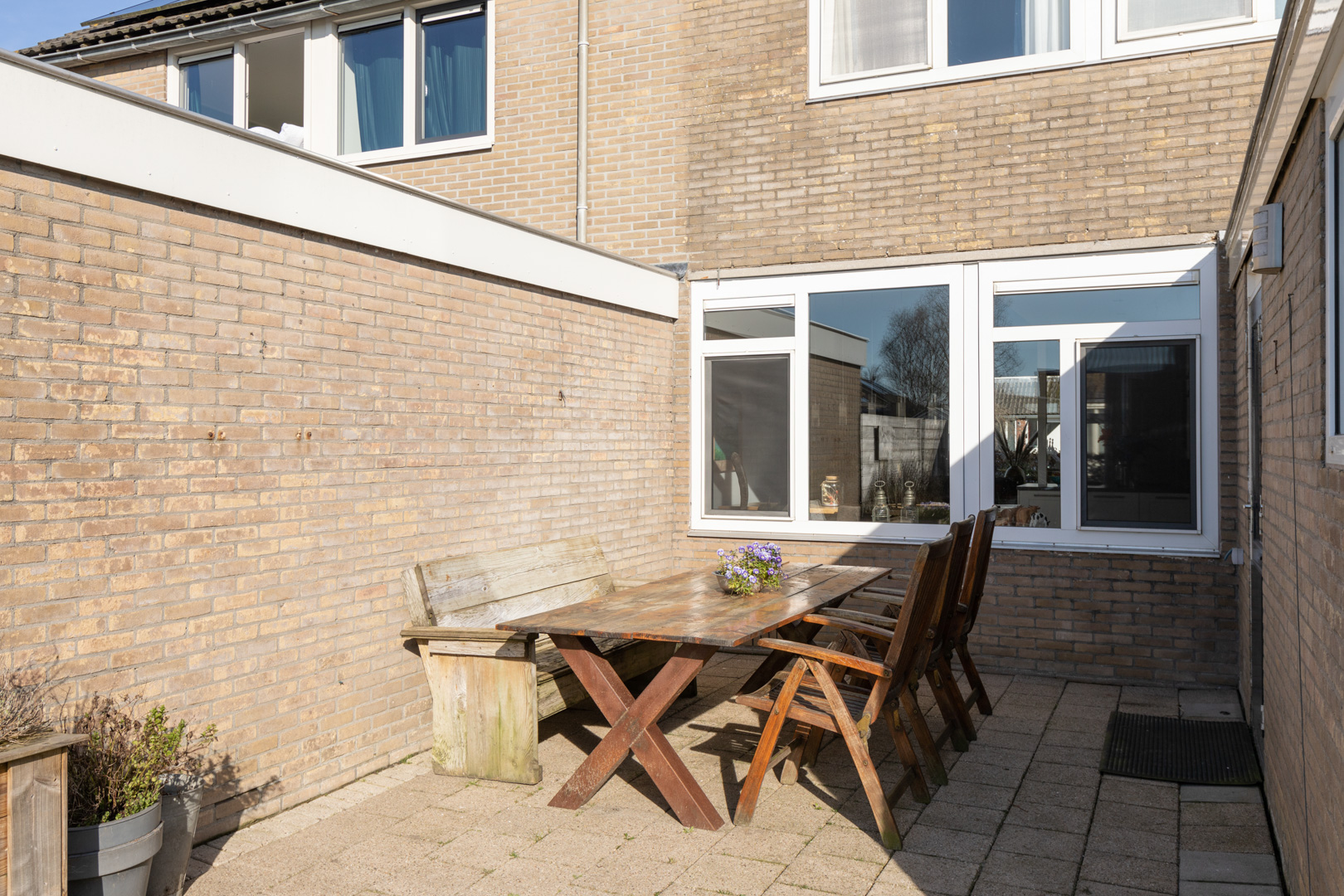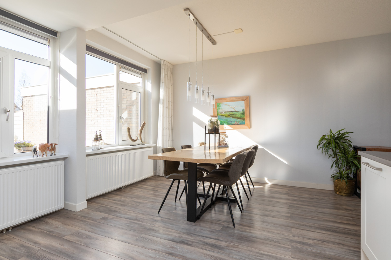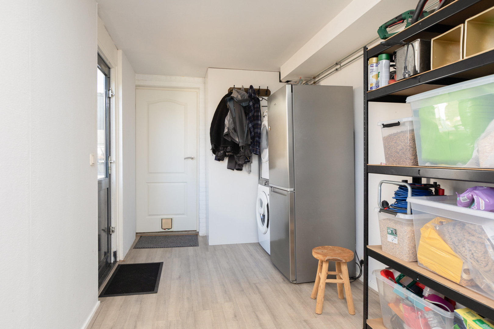 Ruime entree/hal. Meterkast (6 groepen/kookgroep/pv groep/aardlek). Extra ruime, moderne wc ingericht met wandcloset en fonteintje. Ruime living (woonkamer + keuken ca. 41m2) met moderne laminaatvloer en heerlijk veel lichtinval. De royale keukeninrichting in hoekopstelling is modern uitgevoerd (2016) en voorzien van diverse inbouwapparatuur (koel-vriescombinatie, vaatwasmachine, combi-oven, inductiekookplaat, afzuigkap) en een verlaagd plafond met inbouwverlichting. Aansluitend de bijkeuken/berging (ca. 11m2) met opstelling van de cv-combiketel en aansluiting wasmachine/wasdroger. De 17m diepe achtertuin op het westen biedt veel vrijheid, rust, zon en privacy! Kippenhok (ca. 6m2) met betonnen fundering, eenvoudig aan te passen tot berging. Achterom via gezamenlijke steeg. Aangelegde voortuin.