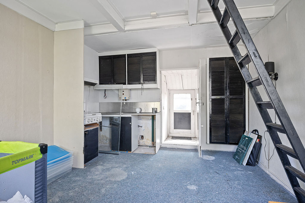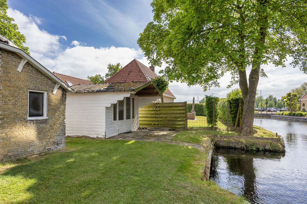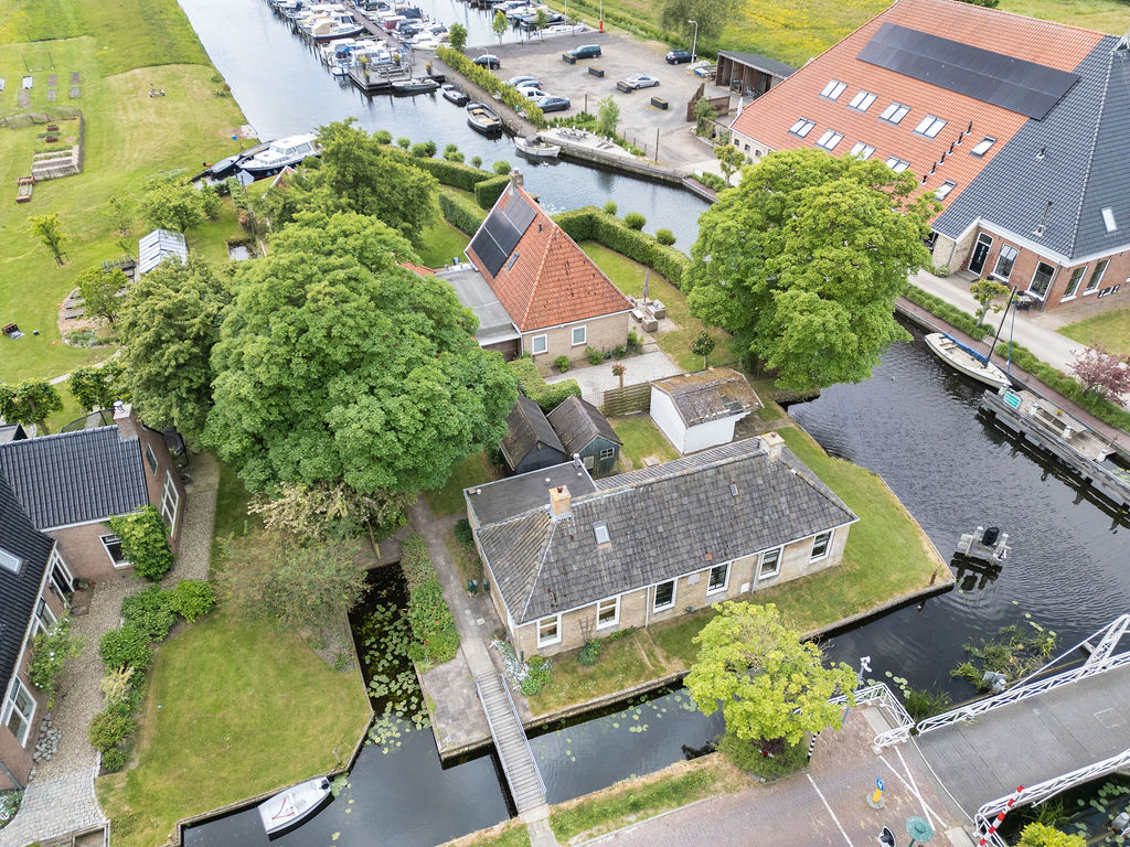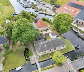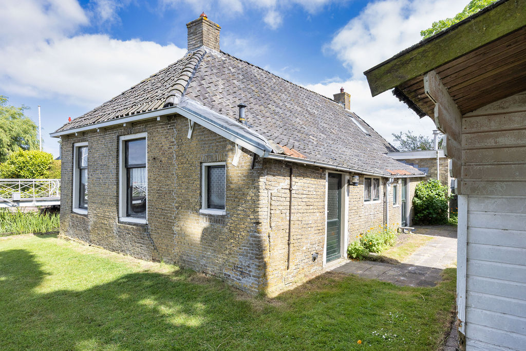 Deze rij met drie arbeiderswoningen is oorspronkelijk gebouwd rond 1857 en moet nog volledig worden verbouwd, gerenoveerd en samengevoegd tot een heerlijk en comfortabel vrijstaand huis. Thans heeft het geheel een woonoppervlak van zo'n 104m2 en een zolder van zo'n 25m2. Er zijn mogelijkheden voor levensloopbestendig wonen, thuiswerken en/of een kantoor, atelier of praktijk aan huis. De, thans, linker woning is redelijk bewoonbaar en de tussenwoning en hoekwoning aan de waterzijde zijn in slechte en onbewoonbare toestand. Het perceel is bereikbaar middels een recht van voet- en kruipad over de loopbrug.
