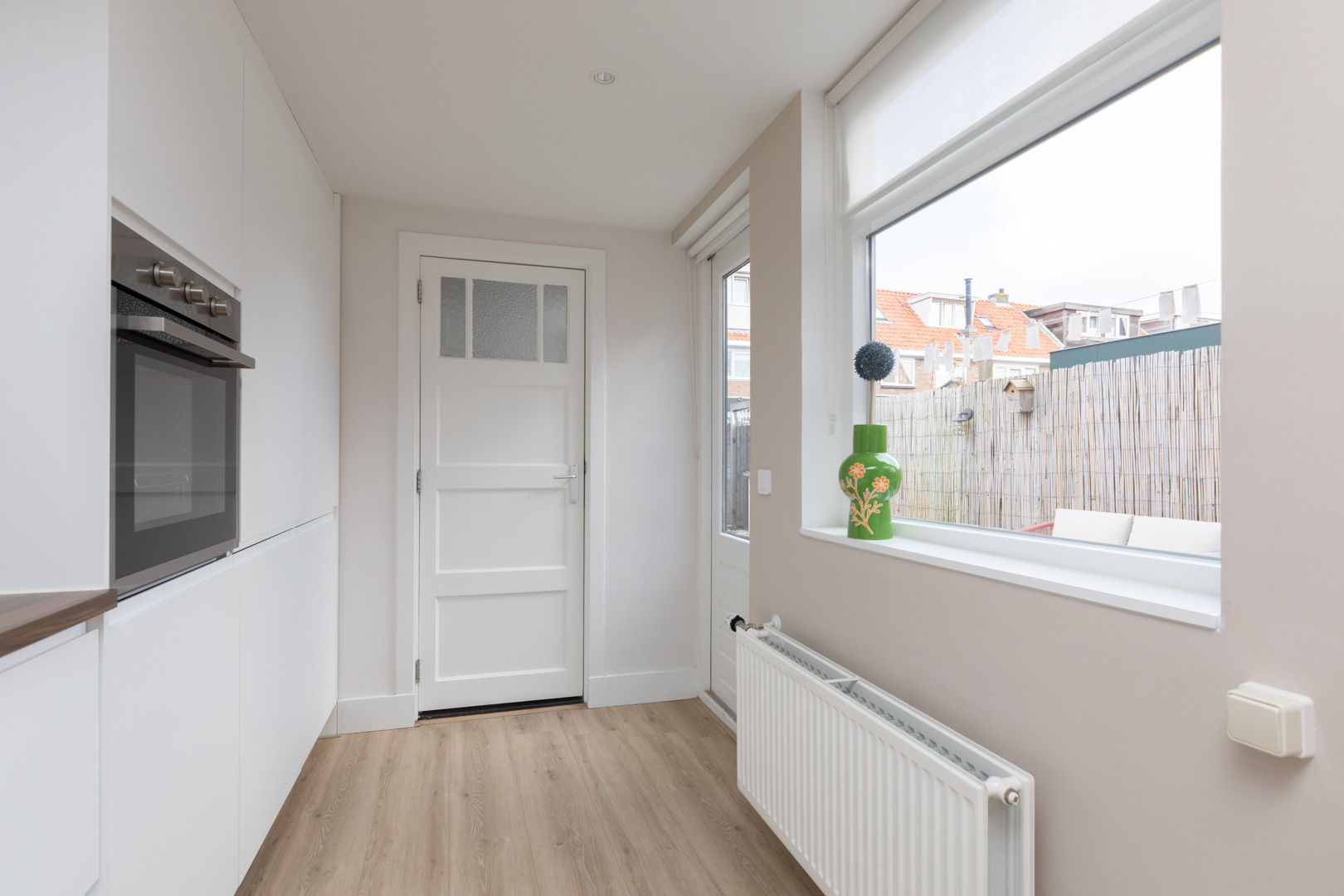 Ruime entree/hal met nieuwe voordeur en wc. De wc is vergroot en vernieuwd en ingericht met wandcloset en fonteintje. Meterkast (8 gr./kookgroep/aardlek). Trapopgang. Trapkast. Deur met glas naar de heerlijk ruime doorzonkamer (ca. 27m2) met moderne pvc vloer, hoge plint en strakke wand- en plafondafwerking. Open keuken (ca. 11m2), deels uitgebouwd, met nieuwe (2024) inrichting voorzien van inbouwapparatuur (inductie kookplaat, afzuigkap, heteluchtoven, vaatwasmachine, koel-/vriescombinatie). Plafond met inbouwverlichting. Deur naar de tuin. Moderne, nieuwe, badkamer (ca. 6m2) ingericht met wastafelmeubel met twee wastafels en kranen, inloopdouche en een designradiator. Plafond met inbouwverlichting. Aangebouwde wasruimte/bijkeuken (ca. 5m2) met radiator, wasmachine/wasdroger aansluiting en opstelling cv-combiketel. Aangebouwde houten berging (ca. 7m2) voorzien van elektra. Buitenkraan. Tuinverlichting. De passend aangelegde tuin is ca. 11m diep, ligt als laatste op de achterom en biedt veel ruimte voor ontspanning. Verlichting in de steeg. Passend aangelegde voortuin.